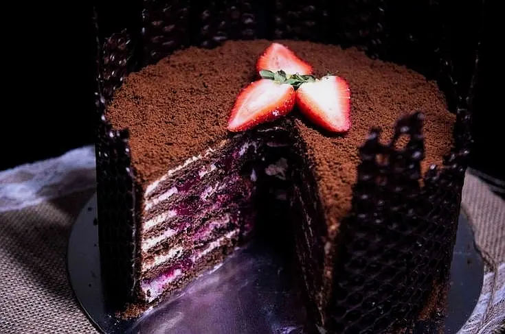 Chiếc bánh này có tên là Medovik, là một loại bánh ngọt ở Nga. Truyền thuyết nói rằng bánh Medovik được đích thân Hoàng đế Alexander I sai người làm ra tặng cho hoàng hậu của mình, bà là một người không thích đồ ngọt nhưng cũng phải xiêu lòng vì nó. Tôi cũng mong rằng anh sẽ thích nó.